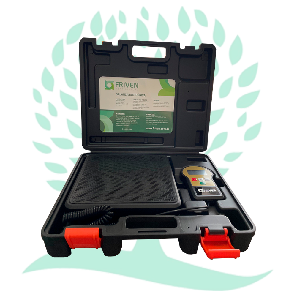 Também conhecido como balança, este instrumento de origem Chinesa se destaca pela confiabilidade e a melhor relação custo x benefício do mercado de refrigeração. Tem capacidade para até 100 kg e tem uma precisão de 5 gramas. Dispõe de visor digital de fácil visualização e funciona com bateria de 9v. Tudo acondicionado em uma prática e resistente maleta.